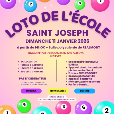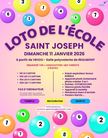 Loto de l'Ecole privée St Joseph : organisé par l'Association des Parents d'Elèves
