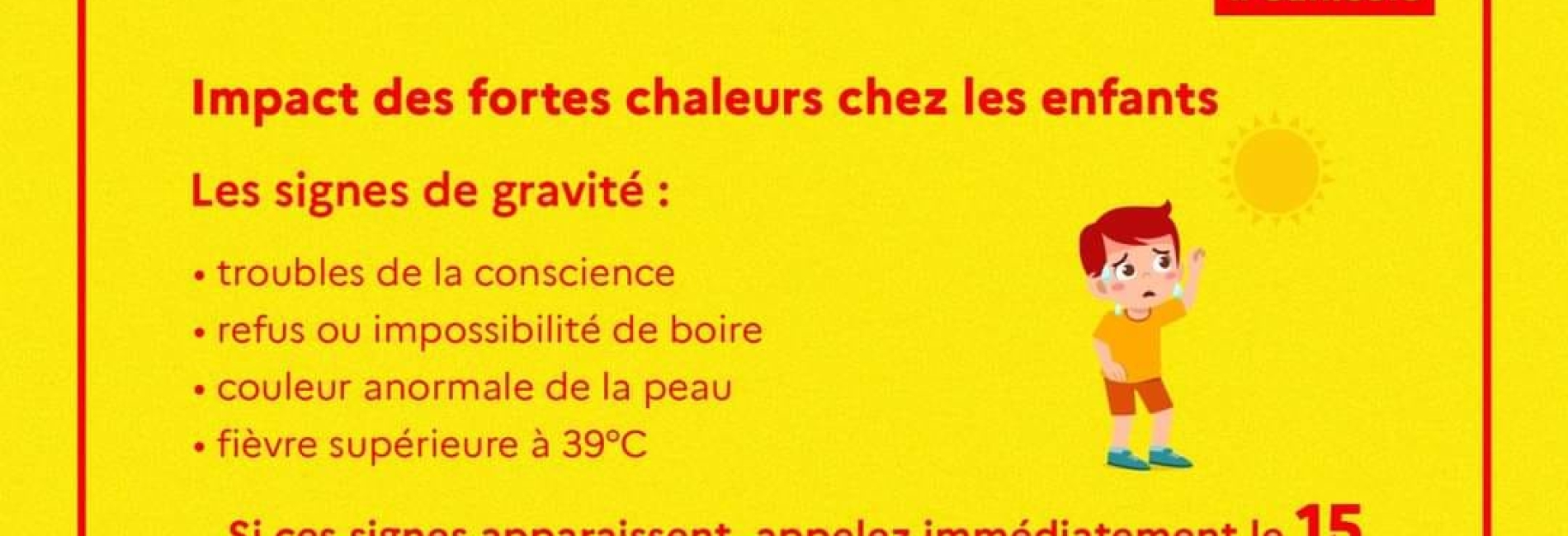 En cas de malaise, forte fièvre ou propos incohérents, composez le 15.